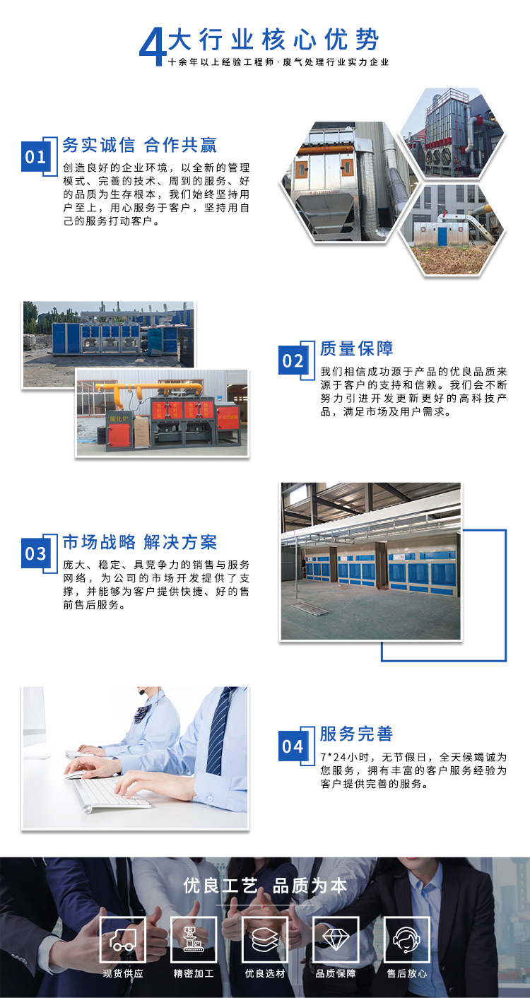 公司自成立以來(lái),始終專注于工業(yè)廢氣、污水、粉塵等環(huán)境污染的治理,先后研發(fā)出催化燃燒設(shè)備、光氧催化廢氣處理設(shè)備、低溫等離子廢氣處理設(shè)備、粉塵處理-體化設(shè)備等一系列環(huán)保設(shè)備,產(chǎn)品先后通過(guò)ISO901質(zhì)量管理體系認(rèn)證、中國(guó)環(huán)境保護(hù)產(chǎn)品認(rèn)證。
